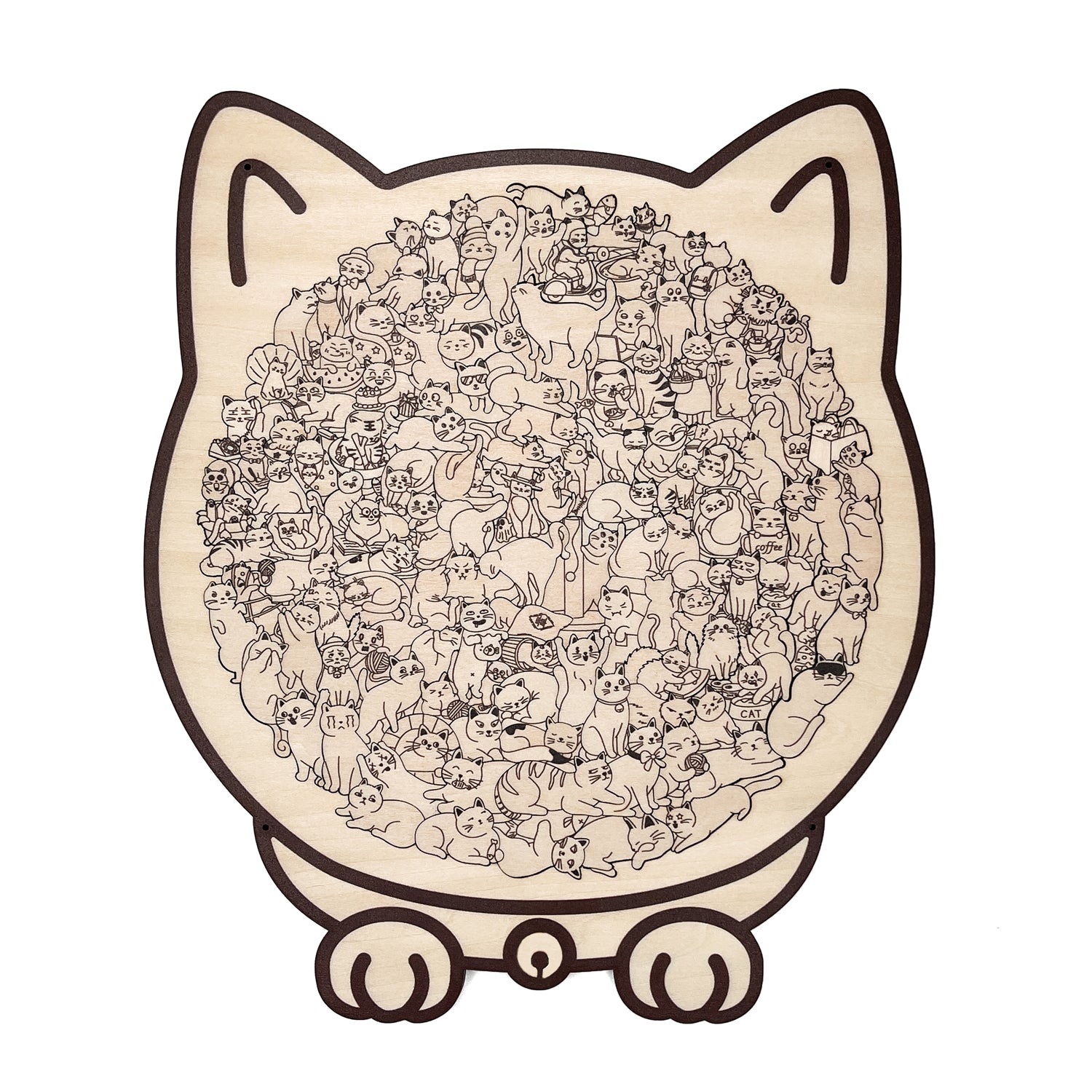 Każdy element układanki jest starannie zaprojektowany i ma swój niepowtarzalny kształt. Niektóre przypominają kocie łapki, inne przedstawiają koty w różnych pozach. Precyzyjnie przycięte krawędzie zapewniają idealne dopasowanie po złożeniu. Obrazek jest pełen kotów w różnych pozach i o różnych minach – niektóre leniwie leżą, inne figlarnie zerkają w dal. Misterne detale pozwalają zajrzeć do „małego świata” kotów, tworząc radosną eksplorację podczas układania układanki.