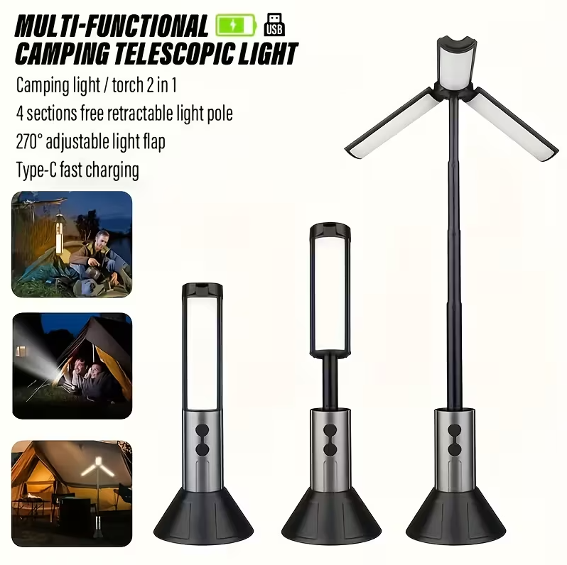 4-biegowa, chowana lampa kempingowa LED