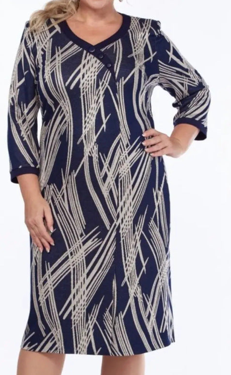Pakiet zawiera: 1 * Elegancka damska sukienka z abstrakcyjnym nadrukiem z rękawami 3/4