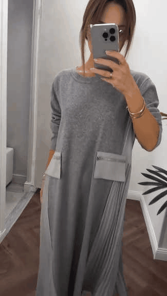 Wzbogać swoją garderobę o tę Damską Plisowaną Sukienkę Casualową z Kołnierzykiem Okrągłym, Wstawkami i Kieszeniami. Dzięki stylowym wstawkom, praktycznym kieszeniom i eleganckim plisom oferuje komfort i uniwersalność na co dzień, zachowując jednocześnie szykowny, nowoczesny wygląd.