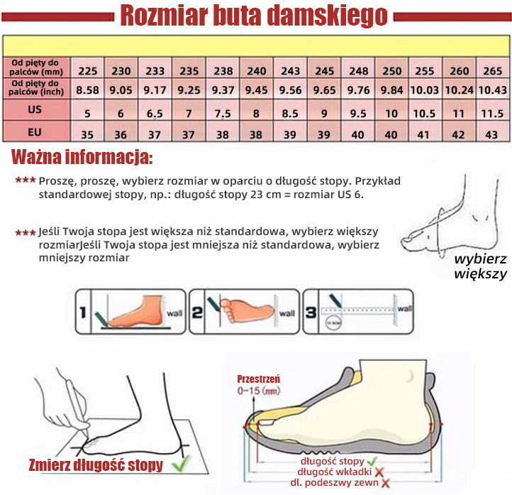 | Rozmiar etykiety | Wielka Brytania | Długość stopy (cm) | Długość buta wewnętrznego (cm) |